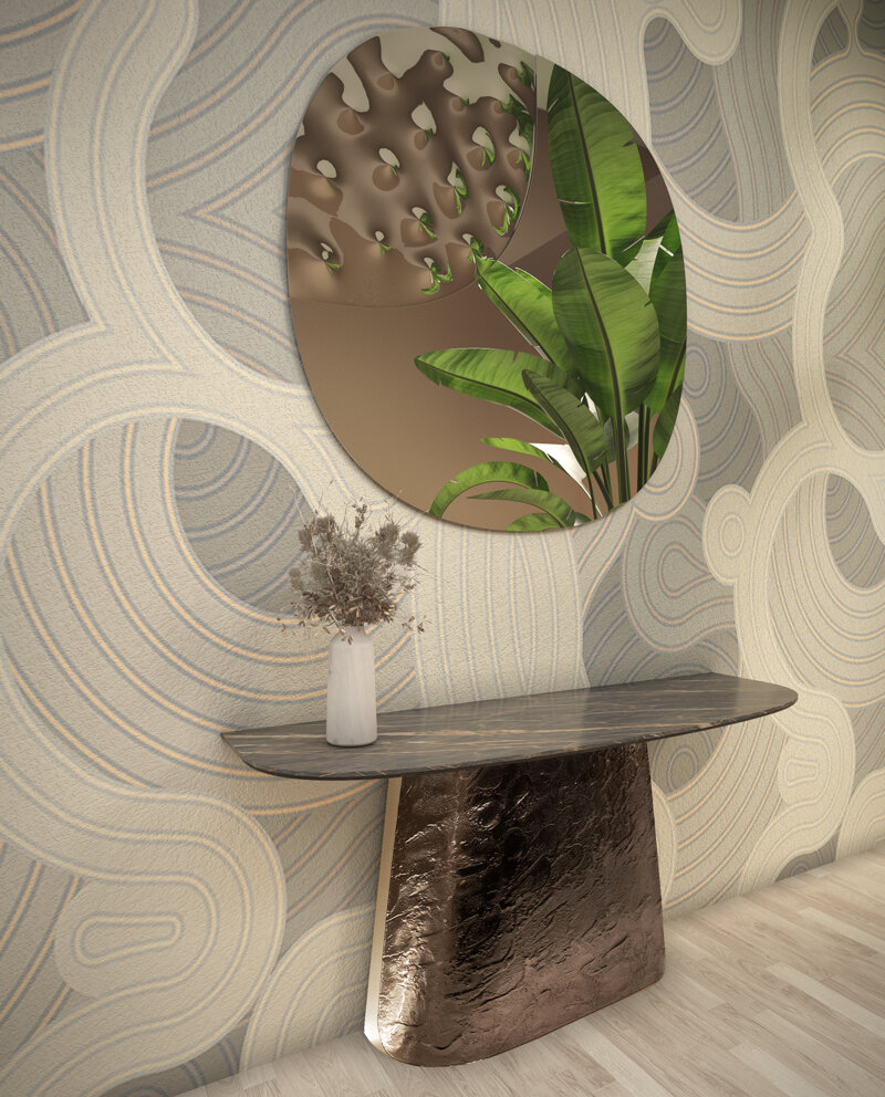 Adone consolle vetro fuso tonin casa - vetro martellato bronzo con piano gres porcellanato portoro lucido 35493-539034-2545888