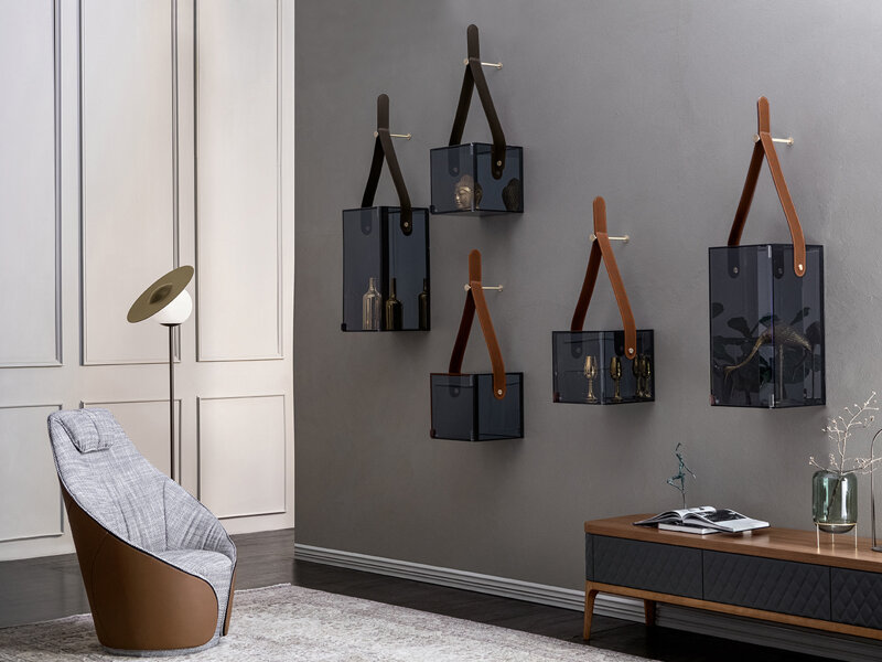 Chery vetrina tonin casa - versione 35x35 cm h totale con fibbia cuoio 100 cm / fumè / cuio cognac 35493-538958-2507447