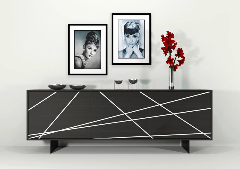 Contenitore effetto legno nelle varianti: Noce Canaletto, Rovere Naturale e Frassino Nero. Viene reso ulteriormente elegante dalle linee con effetto a rilievo. Un contrasto di colori e trama che unisce semplicità ed eleganza. Una madia due o tre ante, che poggia su di una solida base in metallo verniciato bronzo pietra. Un must. Semplicemente.