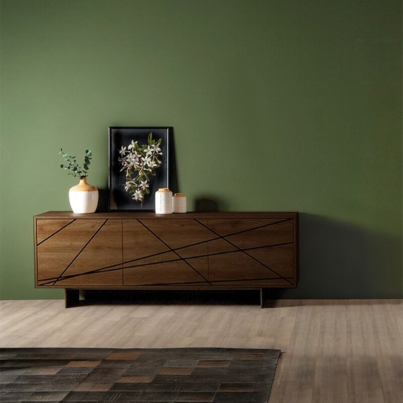 Contenitore effetto legno nelle varianti: Noce Canaletto, Rovere Naturale e Frassino Nero. Viene reso ulteriormente elegante dalle linee con effetto a rilievo. Un contrasto di colori e trama che unisce semplicità ed eleganza. Una madia due o tre ante, che poggia su di una solida base in metallo verniciato bronzo pietra. Un must. Semplicemente.