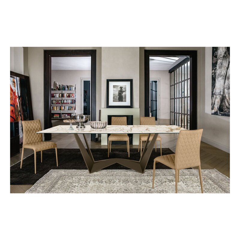 Un tavolo letteralmente reversibile perfetto per ogni occasione. Una base in acciaio verniciato con piani in vetro disponibili in diverse finiture. Scegli la forma che più ti si addice e crea la tua sala da pranzo perfetta.