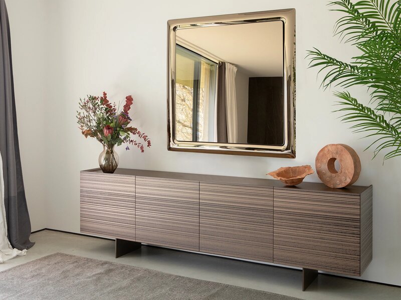 Madia contenitore a tre o quattro ante in legno con finiture lineari e materiche, caratterizzate dalla lavorazione in altorilievo, in un gioco di contrasti dalle nuances bronzo. Stripes dona ad ogni ambiente un’estetica decisa, data dal suo design grafico.
